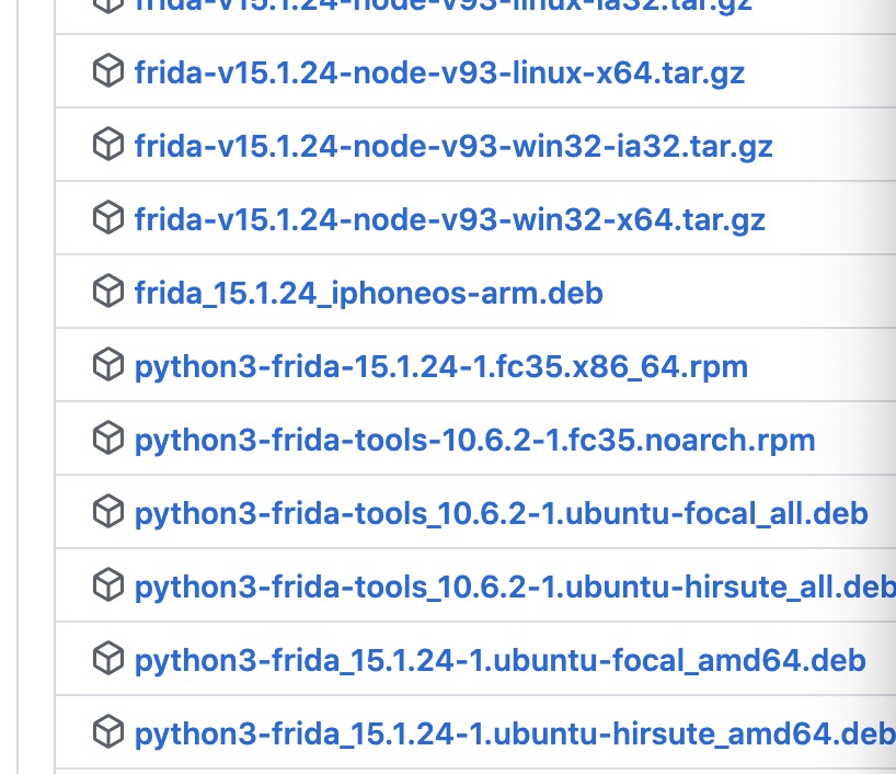 打开 frida 的 github 的 release page,这里有开发者编译好的 各个平台的版本。